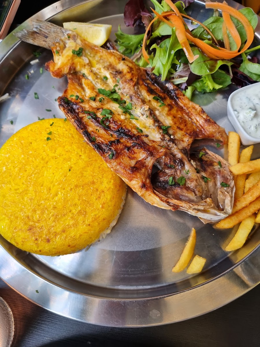 If you prefer something lighter, Fanoos also serves a variety of small plates that are perfect for sharing. Their Houmous, creamy and smooth, pairs wonderfully with freshly baked flatbread. It's a perfect appetizer to start your meal, giving you a taste of the bold and aromatic spices that are characteristic of Persian food. Another crowd-pleaser is the Seabass, beautifully cooked to retain its moisture while offering a delicate, flaky texture.